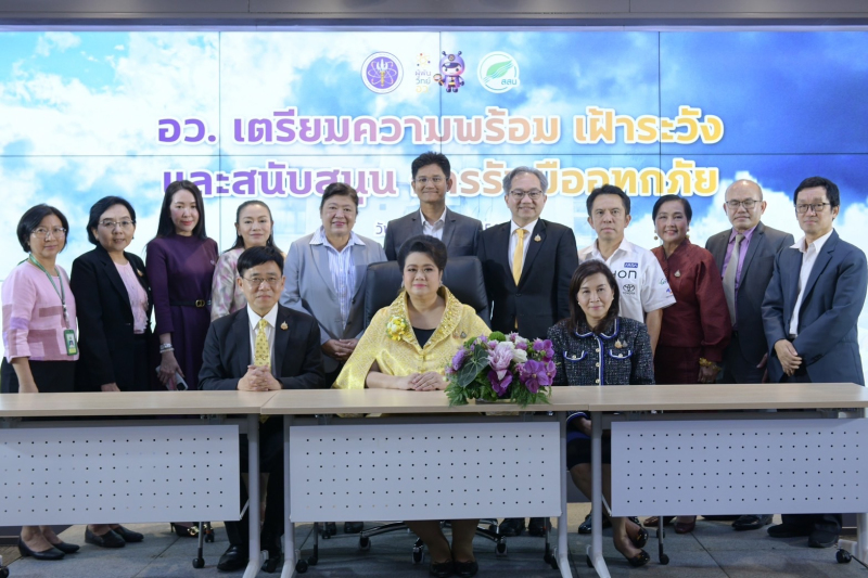 รมว.กระทรวง อว.กล่าวต่อว่า ดังนั้น กระทรวง อว. จึงได้เตรียมความพร้อมในการรับมือกับสถานการณ์ที่อาจเกิดขึ้น โดยมอบนโยบายสำคัญ 6 เรื่อง ดังนี้ 1. มอบหมายให้ สสน. เป็นหน่วยงานหลักในการสนับสนุนการติดตามและแจ้งเตือนสถานการณ์น้ำให้กับประชาชน โดยให้วิเคราะห์ข้อมูลและประสานงานกับหน่วยงานในพื้นที่ เพื่อเตรียมการรับมืออุทกภัยอย่างมีประสิทธิภาพ สสน. จะทำหน้าที่เป็นคลังข้อมูลน้ำแห่งชาติ รวบรวมข้อมูลจาก 52 หน่วยงาน ภายใน 12 กระทรวง พร้อมทั้งใช้ระบบวิเคราะห์และติดตามสถานการณ์น้ำที่ทันสมัย 2. สนับสนุนการจัดตั้งศูนย์บริหารจัดการน้ำในพื้นที่เสี่ยงอุทกภัยส่วนหน้า ร่วมกับสำนักงานทรัพยากรน้ำแห่งชาติ (สทนช.) โดย สสน. จะปฏิบัติงานร่วมกับหน่วยงานท้องถิ่นและ สทนช. นำความรู้และเทคโนโลยีด้านการจัดการน้ำมาใช้แก้ไขปัญหาอย่างเต็มประสิทธิภาพ พร้อมสนับสนุนอุปกรณ์และเทคโนโลยีที่ทันสมัย ประกอบด้วย รถ Mobile War Room หน่วยวิเคราะห์และติดตามสถานการณ์น้ำเคลื่อนที่ สถานีโทรมาตรตรวจวัดสภาพอากาศและระดับน้ำอัตโนมัติ การใช้ภาพถ่ายดาวเทียมและเทคโนโลยีภูมิสารสนเทศในการสำรวจภูมิประเทศเพื่อวางแผนบริหารจัดการน้ำในพื้นที่ ระบบติดตามและคาดการณ์สถานการณ์น้ำตลอด 24 ชั่วโมง และแอปพลิเคชัน ThaiWater รายงานสถานการณ์น้ำ 3. ให้ศูนย์ปฏิบัติการผู้พันวิทย์ ซึ่งเป็น "หน่วยปฏิบัติการเคลื่อนที่เร็วของ อว." เข้ามามีส่วนร่วมในการเตรียมความพร้อมและรับมือสถานการณ์อุทกภัย โดยจัดทีมลงพื้นที่เพื่อให้ความรู้ แจ้งเตือนสถานการณ์ และให้คำแนะนำแก่ประชาชนในการเตรียมตัวรับมืออุทกภัย รวมทั้งประสานงานกับหน่วยงานราชการในพื้นที่ องค์กรปกครองส่วนท้องถิ่น และภาคประชาสังคม เพื่อวางแผน ดำเนินการป้องกัน และบรรเทาผลกระทบจากอุทกภัยอย่างบูรณาการ 4. ริเริ่ม "โมเดล อว. แจ้งภัยน้ำ" โดยประสานงานกับมหาวิทยาลัยในพื้นที่ให้รับข้อมูลสถานการณ์น้ำจาก สสน. และสื่อสารแจ้งเตือนภัยจากภาควิชาการสู่ประชาชนอย่างทั่วถึง รวมทั้งสนับสนุนให้นักศึกษาและบุคลากรของมหาวิทยาลัยมีส่วนร่วมในการเฝ้าระวัง รวมถึงให้ความรู้ และช่วยเหลือชุมชนโดยรอบ 5. ส่งเสริมให้มหาวิทยาลัยในพื้นที่นำความเชี่ยวชาญทางวิชาการในสาขาที่เกี่ยวข้อง มาร่วมเป็นที่ปรึกษาให้กับจังหวัดในการวางแผนรับมืออุทกภัยในพื้นที่เสี่ยงภัย และให้มหาวิทยาลัยจัดตั้งศูนย์ประสานงานเฉพาะกิจ เพื่อรับมือสถานการณ์อุทกภัย รวมทั้งใช้พื้นที่ และทรัพยากรของมหาวิทยาลัย เป็นศูนย์พักพิงชั่วคราวหากจำเป็น และ 6. มอบนโยบายให้ทุกหน่วยงา