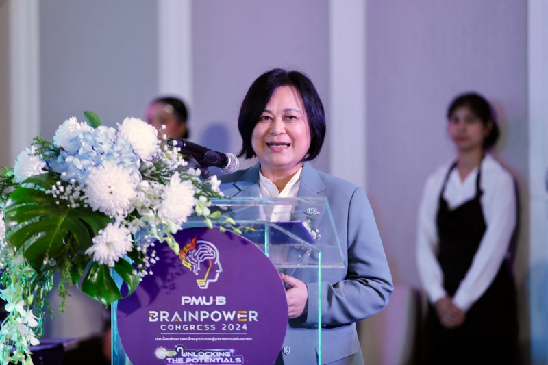 “การจัดงาน PMU-B Brainpower Congress 2024 ครั้งนี้ นับเป็นเวทีสำคัญที่รวบรวมนักวิชาการ ผู้เชี่ยวชาญ และภาคส่วนที่เกี่ยวข้องทั้งในประเทศและระดับสากลมาร่วมแลกเปลี่ยนองค์ความรู้และแนวทางปฏิบัติในระบบวิทยาศาสตร์ วิจัยและนวัตกรรม (ววน.) จึงเป็นอีกก้าวสำคัญในการรวมพลังสมองของคนไทยเพื่อปลดล็อกศักยภาพของประเทศและจุดประกายความคิดใหม่ ๆ ที่จะพาประเทศเข้าสู่อุตสาหกรรมแห่งอนาคตอย่างมั่นคง และตอบโจทย์โลกแห่งอนาคต” เลขานุการ รมว.อว. กล่าว