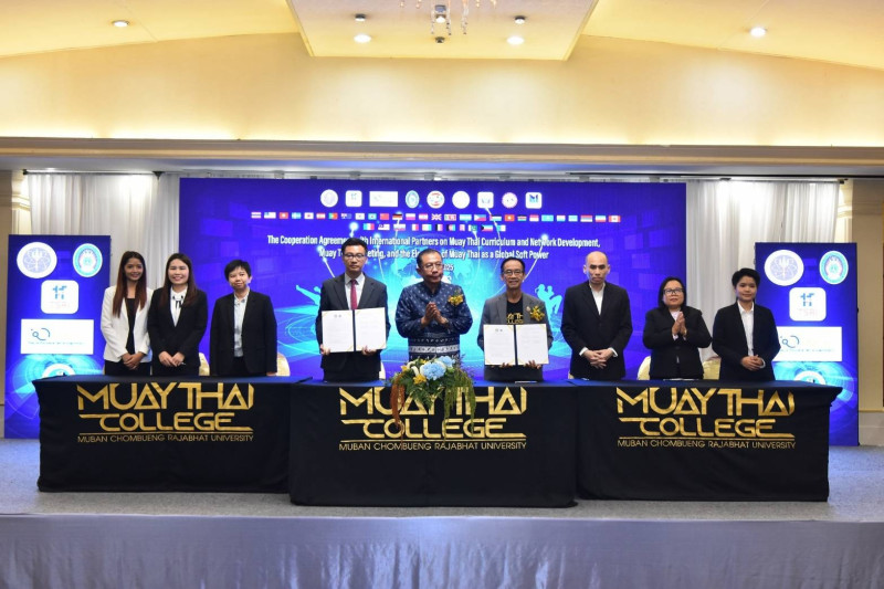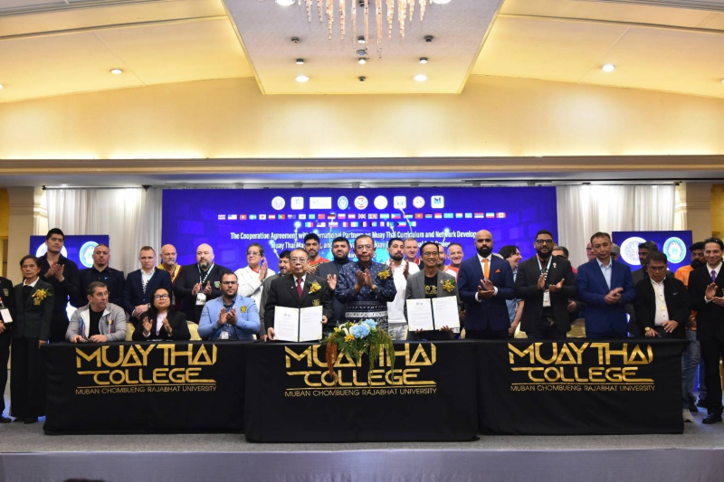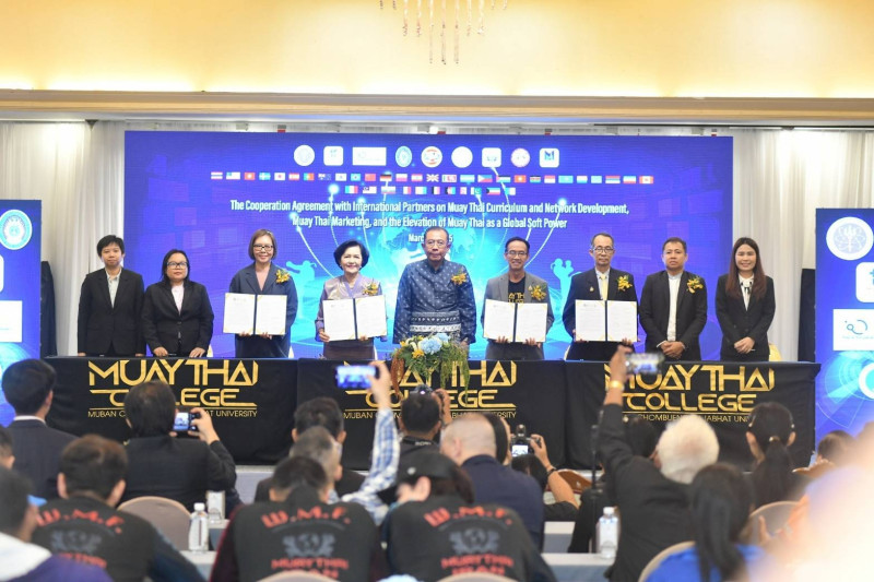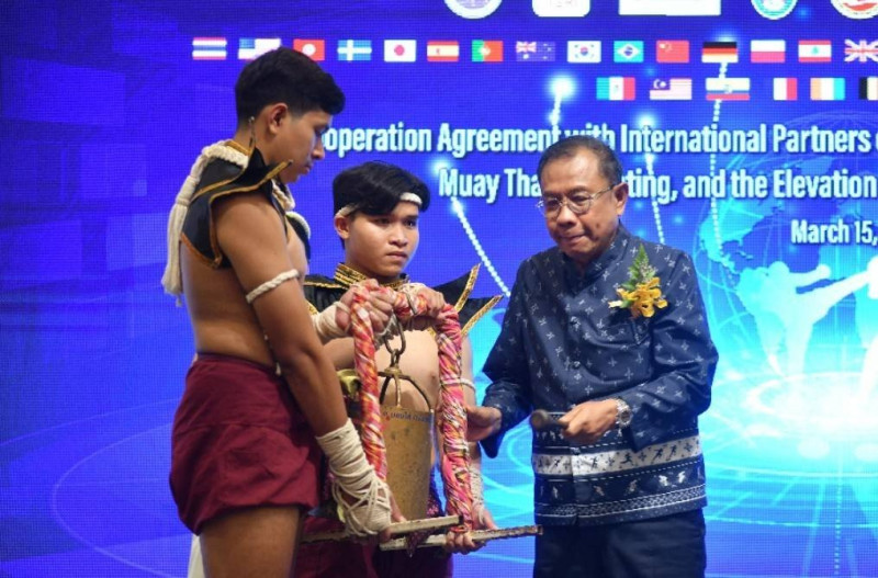 เมื่อวันที่ 15 มีนาคม นายศุภชัย ใจสมุทร ผู้ช่วยรัฐมนตรีว่าการกระทรวงการอุดมศึกษา วิทยาศาสตร์ วิจัยและนวัตกรรม (อว.) เป็นประธานในพิธีลงนามความร่วมมือกับภาคีเครือข่ายต่างประเทศ ในการพัฒนาหลักสูตรและเครือข่ายมวยไทยในต่างประเทศ การทำการตลาดมวยไทย และยกระดับ SOFT POWER มวยไทยสู่สากล โดยการสนับสนุนจากสำนักงานคณะกรรมการส่งเสริม วิทยาศาสตร์ วิจัยและนวัตกรรม (สกสว.) และ หน่วยบริหารและจัดการทุนด้านการเพิ่มความสามารถในการแข่งขันของประเทศ (บพข.) ภายใต้ “โครงการการพัฒนาผลิตภัณฑ์การท่องเที่ยวศิลปะการต่อสู้ มวยไทยแบบบูรณาการเพื่อส่งเสริมการท่องเที่ยวคุณค่าสูงและเศรษฐกิจสร้างสรรค์” โดยมี ผศ.ดร.ชัยฤทธิ์ ศิลาเดช อธิการบดีมหาวิทยาลัยราชภัฏหมู่บ้านจอมบึง ผศ.สุภาวดี โพธิยะราช ผู้เชี่ยวชาญอาวุโส สกสว. รศ.ดร.ชาลีดา บรมพิชัยชาติกุล รักษาการรองผู้อำนวยการกลุ่มงานด้านกลยุทธ์วิจัย บพข. ดร.ชาญณรงค์ สุหงษา นายกสมาคมสถาบันศิลปะการต่อสู้ป้องกันตัวแบบไทย หน่วยงานภาคีเครือข่าย และผู้แทนจาก 30 ประเทศ กว่า 150 คน เข้าร่วม ณ ห้องประชุมกษัตริย์ศึก 2 ชั้น 4 โรงแรมเดอะทวินทาวเวอร์ ถนนพระรามที่ 6 กรุงเทพฯ
