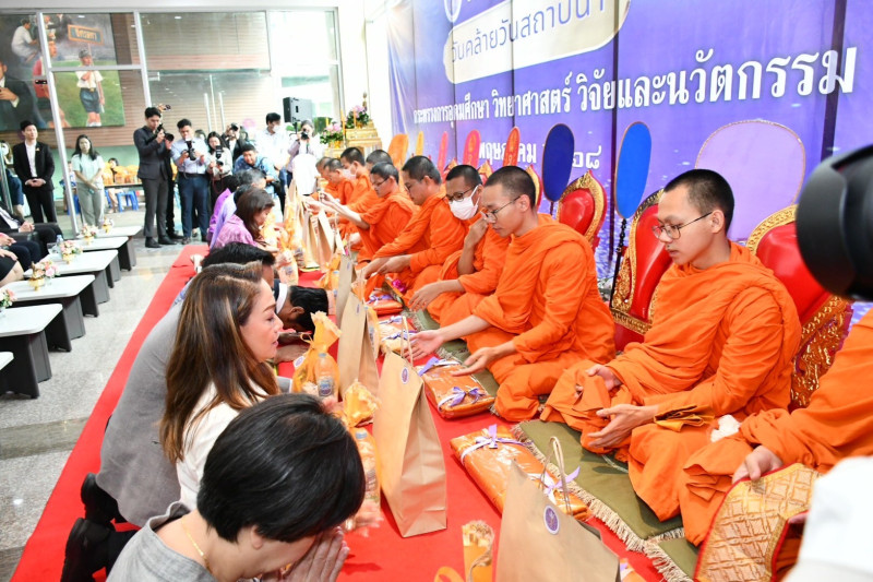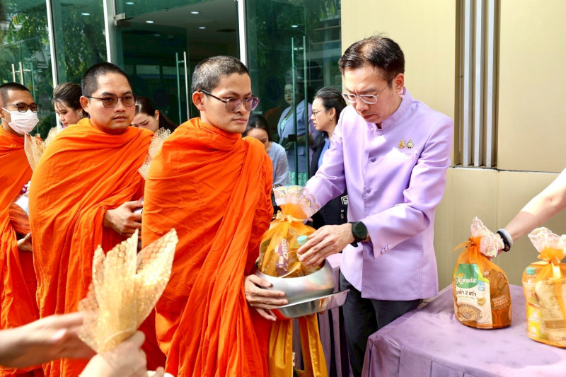 เมื่อวันที่ 2 พ.ค. 68 ช่วงเช้า กระทรวงการอุดมศึกษา วิทยาศาสตร์ วิจัยและนวัตกรรม (อว.) จัดพิธีทำบุญตักบาตรอาหารแห้งและถวายภัตตาหารเช้าแด่พระสงฆ์ จำนวน 10 รูป จากวัดเบญจมบพิตรดุสิตวนารามราชวรวิหาร เนื่องในวันคล้ายวันสถาปนากระทรวง อว. ครบรอบ 6 ปี โดยมี น.ส.ศุภมาส อิศรภักดี รัฐมนตรีว่าการกระทรวง อว. ศ.ดร.ศุภชัย ปทุมนากุล ปลัดกระทรวง นางสาววราภรณ์ รุ่งตระการ รองปลัดกระทรวง นายวันนี นนท์ศิริ ผู้ตรวจราชการกระทรวง ดร.พันธุ์เพิ่มศักดิ์ อารุณี ผู้ช่วยปลัดกระทรวง พร้อมด้วยผู้บริหารหน่วยงาน ข้าราชการ พนักงาน และเจ้าหน้าที่ เข้าร่วมพิธี ณ ห้องโถง ชั้น 1 อาคารอุดมศึกษา 2 สป.อว. (ศรีอยุธยา)