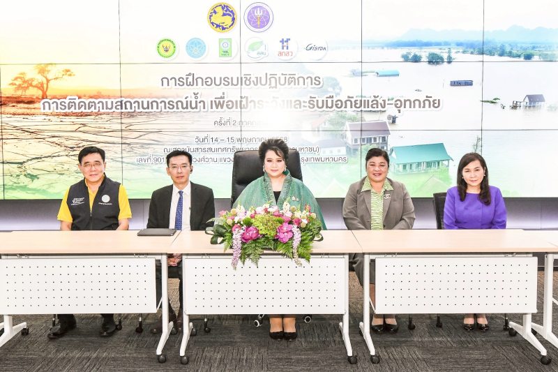 เมื่อวันที่ 14 พ.ค. นางสาวศุภมาส อิศรภักดี รัฐมนตรีว่าการกระทรวงการอุดมศึกษา วิทยาศาสตร์ วิจัยและนวัตกรรม (อว.) เป็นประธานเปิด "โครงการฝึกอบรมเชิงปฏิบัติการติดตามสถานการณ์น้ำ เพื่อเฝ้าระวังและรับมือภัยแล้ง-อุทกภัย" ครั้งที่ 2 สำหรับพื้นที่ภาคกลาง ซึ่งจัดขึ้นโดยกระทรวง อว. โดยสถาบันสารสนเทศทรัพยากรน้ำ (องค์การมหาชน) หรือ สสน.และ สำนักงานพัฒนาเทคโนโลยีอวกาศและภูมิสารสนเทศ (องค์การมหาชน) หรือ GISTDA ระหว่างวันที่ 14 - 15 พฤษภาคม 2568 โดยมี พญ.เพชรดาว โต๊ะมีนา ที่ปรึกษา รมว.อว. ศ.ดร.ศุภชัย ปทุมนากุล ปลัดกระทรวง อว. นายแพทย์รุ่งเรือง กิจผาติ อธิบดีกรมวิทยาศาสตร์บริการ รักษาราชการแทนเลขาธิการสำนักงานปรมาณูเพื่อสันติ ดร.รอยบุญ รัศมีเทศ ผู้อำนวยการ สสน. ดร.วิภารัตน์ ดีอ่อง ผู้อำนวยการสำนักงานการวิจัยแห่งชาติ และผู้บริหารจากหน่วยงานในสังกัดกระทรวงอว. เข้าร่วมงาน พร้อมด้วยผู้บริหารและบุคลากรของกระทรวงมหาดไทย จากหน่วยงานต่าง ๆ ในพื้นที่ภาคกลางและหน่วยงานที่เกี่ยวข้อง จำนวน 120 คน จาก 8 จังหวัด ได้แก่ ลพบุรี ชัยนาท สิงห์บุรี อ่างทอง สระบุรีพระนครศรีอยุธยา ปทุมธานี และนนทบุรี เข้าร่วมอบรม ณ อาคารสถาบันสารสนเทศทรัพยากรน้ำ