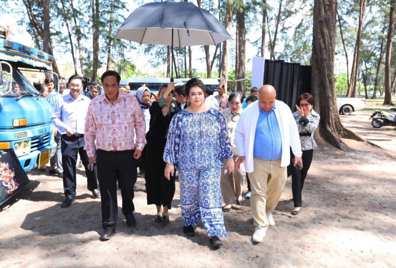 เมื่อวันที่ 19 ม.ค. น.ส.ศุภมาส อิศรภักดี รมว.การอุดมศึกษา วิทยาศาสตร์ วิจัยและนวัตกรรม (อว.) พร้อมด้วย พญ.เพชรดาว โต๊ะมีนา ที่ปรึกษา รมว.อว. รศ.ดร.พาสิทธิ์ หล่อธีรพงศ์ รองปลัด อว. และคณะผู้บริหาร อว. ลงพื้นที่ติดตามการดำเนินงานของ อว. ในพื้นที่จังหวัดภูเก็ต พังงา และระนอง ก่อนการประชุมคณะรัฐมนตรีอย่างเป็นทางการนอกสถานที่ ครั้งที่ 1/2567 ณ พื้นที่กลุ่มจังหวัดภาคใต้ฝั่งอันดามัน (กระบี่ ตรัง พังงา ภูเก็ต ระนอง และสตูล) ประเดิมงานแรกติดตามการขับเคลื่อนการท่องเที่ยว “โครงการเชื่อมเส้นทางท่องเที่ยว อ่าวไทย-อันดามัน” โดยความร่วมมือ 5 มหาวิทยาลัยราชภัฏ (มรภ.) ประกอบด้วย มรภ.ภูเก็ต มรภ.นครศรีธรรมราช มรภ.สงขลา มรภ.สุราษฎร์ธานี และ มรภ.ยะลา โดยมี นายสุวิทย์ สุริยะวงค์ ปลัดจังหวัดภูเก็ต ผศ.ดร.หิรัญ ประสารการ อธิการบดีมหาวิทยาลัยราชภัฏภูเก็ต และคณะ ให้การต้อนรับอย่างอบอุ่นด้วยการแสดงรำพื้นบ้านชุดนารีศรีปละตกที่มีชื่อเสียงของบ้านลิพอนใต้ ต.ศรีสุนทร อ.ถลาง จ.ภูเก็ต