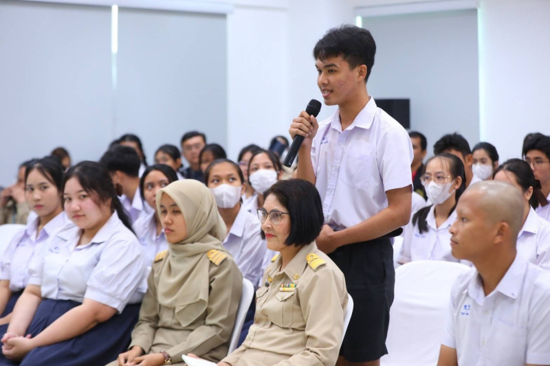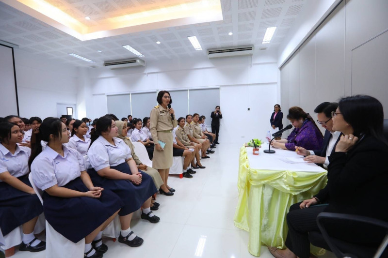 เมื่อวันที่ 22 ม.ค. น.ส.ศุภมาส อิศรภักดี รมว.การอุดมศึกษา วิทยาศาสตร์ วิจัยและนวัตกรรม (อว.) พร้อมด้วย พญ.เพชรดาว โต๊ะมีนา ที่ปรึกษา รมว.อว. น.ส.สุชาดา แทนทรัพย์ เลขานุการ รมว.อว. ศ.ดร.ศุภชัย ปทุมนากุล รองปลัดกระทรวง และคณะผู้บริหาร อว. ได้พบปะกลุ่มนักเรียน จ.ระนอง กว่า 100 คน จาก รร.สตรีระนอง รร.พิชัยรัตนาคาร รร.กะเปอร์วิทยา รร.ราชประชานุเคราะห์ 38 รร.ดำรงศาสน์วิทยา และ รร.กระบุรีวิทยา เพื่อแจ้งนโยบายและรับฟังความคิดเห็นเรื่อง “TCAS ลดค่าใช้จ่าย เพิ่มโอกาส เรียนต่อระดับอุดมศึกษา” ณ ห้องประชุมอาคารใหม่ มหาวิทยาลัยราชภัฏสวนสุนันทา ศูนย์การศึกษาจังหวัดระนอง