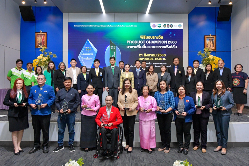 เมื่อวันที่ 21 ส.ค. นางสาวสุดาวรรณ หวังศุภกิจโกศล รัฐมนตรีว่าการกระทรวงการอุดมศึกษา วิทยาศาสตร์ วิจัยและนวัตกรรม (อว.) เป็นประธานในพิธีมอบรางวัล Product Champion กิจกรรมเพื่อการถ่ายทอดเทคโนโลยีการสร้างมูลค่าให้กับอาหารพื้นถิ่น และอาหารฟังก์ชันด้วยการฉายรังสีอาหาร “พัฒนาอาหารพื้นถิ่น สู่มาตรฐานสากล เพิ่มมูลค่าเศรษฐกิจชุมชน ด้วยเทคโนโลยีฉายรังสี” โดยมี นายวิเชียร สุขสร้อย เลขานุการ รมว.อว. รศ.ดร.ธวัชชัย อ่อนจันทร์ ผู้อํานวยการสถาบันเทคโนโลยีนิวเคลียร์แห่งชาติ (องค์การมหาชน) นพ.รุ่งเรือง กิจผาติ อธิบดีกรมวิทยาศาสตร์บริการ รักษาราชการแทนเลขาธิการสำนักงานปรมาณูเพื่อสันติ ผศ.ดร.เชาว์ อินใย อธิการบดีมหาวิทยาลัยราชภัฏเลย ผศ.ดร.สานนท์ ด่านภักดี อธิการบดีมหาวิทยาลัยราชภัฏชัยภูมิ ผศ.ดร.เนตรชนก จันทร์สว่าง รักษาการแทนอธิการบดีมหาวิทยาลัยราชภัฏมหาสารคาม คณะผู้บริหาร และคณะกรรมการตัดสิน ผู้ประกอบการ เข้าร่วม ห้องแถลงข่าว ชั้น 1 อาคารพระจอมเกล้า สป.อว. (โยธี)