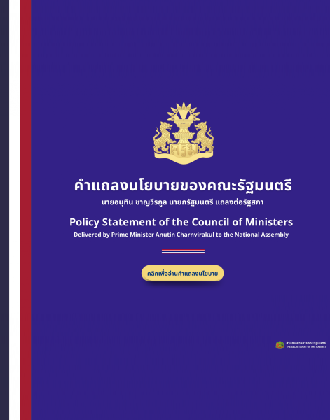 Policy Statement of the Council of Ministers Delivered by Prime Minister Anutin Charnvirakul to the National Assembly