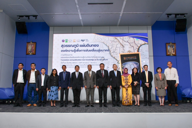 เมื่อวันที่ 21 มี.ค. นายเพิ่มสุข สัจจาภิวัฒน์ ปลัดกระทรวงการอุดมศึกษา วิทยาศาสตร์ วิจัยและนวัตกรรม (อว.) เป็นประธานเปิดงาน สุวรรณภูมิ แผ่นดินทอง : องค์ความรู้เพื่อการขับเคลื่อนสู่อนาคต เปิดตัวหนังสือ “สุวรรณภูมิ แผ่นดินทอง” 8 ภาษา คือ ไทย อังกฤษ จีน ฝรั่งเศส พม่า มลายู เขมร เวียดนาม ภายใต้โครงการ เผยแพร่และส่งเสริมองค์ความรู้งานวิจัยว่าด้วยสุวรรณภูมิ (Translation and publication new knowledge on Suvarnabhumi) โดยมี พญ.เพชรดาว โต๊ะมีนา ที่ปรึกษา รมว.อว. นายวันนี นนท์ศิริ ผู้ช่วยปลัดกระทรวง อว. ผศ.ชวลิต ขาวเขียว รองอธิการบดีฝ่ายกิจการพิเศษ ม.ศิลปากร และผู้อำนวยการสถาบันสุวรรณภูมิศึกษา นพ.บัญชา พงษ์พานิช คณะกรรมการอำนวยการวิทยสถานสังคมศาสตร์ มนุษยศาสตร์ และศิลปกรรมศาสตร์แห่งประเทศไทย (ธัชชา) นายสมปอง สงวนบรรพ์ ผู้อำนวยการสถาบันโลกคดีศึกษา ผศ.ดร.พงค์เทพ สุธีรวุฒิ รองอธิการบดีฝ่ายบริหารและยุทธศาสตร์ ม.สงขลานครินทร์ และนางสาวฉัตต์ธิดา บุญโต ผู้อำนวยการธัชชา เข้าร่วม ณ ห้องแถลงข่าว ชั้น 1 สำนักงานปลัดกระทรวง อว. (อาคารพระจอมเกล้า)