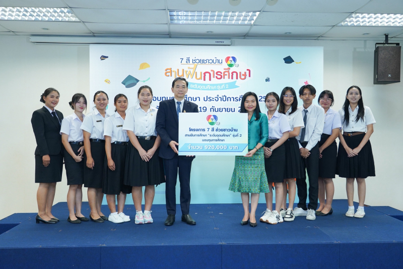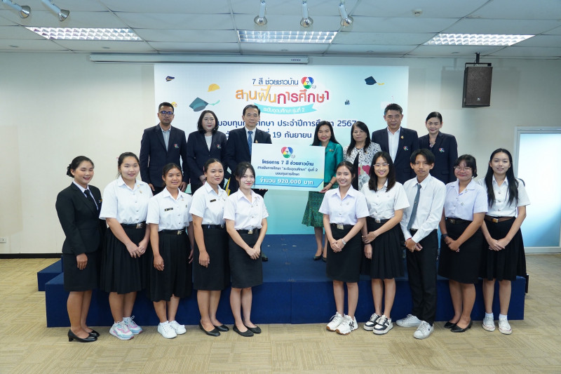 เมื่อวันที่ 19 ก.ย. นางสาววราภรณ์ รุ่งตระการ ที่ปรึกษาด้านระบบบริหารการอุดมศึกษา วิทยาศาสตร์ วิจัยและนวัตกรรม สำนักงานปลัดกระทรวงการอุดมศึกษา วิทยาศาสตร์ วิจัยและนวัตกรรม (สป.อว.) รับมอบทุนการศึกษาโครงการ 7 สี ช่วยชาวบ้าน สานฝันการศึกษา “ระดับอุดมศึกษา” ประจำปี 2567 เพื่อส่งต่อให้นักศึกษาที่ขาดแคลนทุนทรัพย์ ให้มีโอกาสศึกษาต่อในระดับปริญญาตรี จนสำเร็จการศึกษา ณ ห้องอเนกประสงค์ อาคาร 1 ชั้น 1 ช่อง 7HD