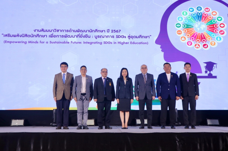 เมื่อวันที่ 26 ก.ย.67 นางสาววราภรณ์ รุ่งตระการ ที่ปรึกษาด้านระบบบริหาร การอุดมศึกษา วิทยาศาสตร์ วิจัยและนวัตกรรม สำนักงานปลัดกระทรวงการอุดมศึกษา วิทยาศาสตร์ วิจัยและนวัตกรรม (สป.อว.) ได้รับมอบหมายจาก นางสาวศุภมาส อิศรภักดี รัฐมนตรีว่าการกระทรวงการอุดมศึกษา วิทยาศาสตร์ วิจัยและนวัตกรรม (อว.) ให้เป็นประธานเปิดงานพร้อมมอบนโยบายในงานสัมมนาวิชาการด้านพัฒนานักศึกษา ปี 2567 “เสริมพลังนิสิตนักศึกษา เพื่อการพัฒนาที่ยั่งยืน : บูรณาการ SDGs สู่อุดมศึกษา” (Empowering Minds for a Sustainable Future: Integrating SDGs in Higher Education) โดยมี นายสุทน เฉื่อยพุก ผู้อำนวยการกองส่งเสริมและพัฒนากำลังคน สป.อว. ผู้บริหารหน่วยงานในสังกัดกระทรวง อว. บุคลากรทางการศึกษา นิสิตนักศึกษา หน่วยงานทั้งภาครัฐและเอกชน และผู้สนใจกว่า 600 คน เข้าร่วมงาน ณ ชั้น 4 โรงแรมเซ็นทารา ไลฟ์ ศูนย์ราชการ และคอนเวนชันเซ็นเตอร์ แจ้งวัฒนะ