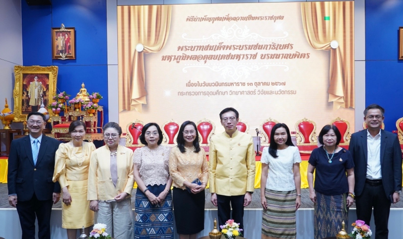 เมื่อวันที่ 13 ตุลาคม 2567 ศ.ดร. ศุภชัย ปทุมนากุล ปลัดกระทรวงการอุดมศึกษา วิทยาศาสตร์ วิจัยและนวัตกรรม (อว.) เป็นประธานในพิธีบำเพ็ญกุศลพระบาทสมเด็จพระบรมชนกาธิเบศร มหาภูมิพลอดุลยเดชมหาราช บรมนาถบพิตร เนื่องในวันนวมินทรมหาราช 13 ตุลาคม 2567 โดยมี นางสาวสุณีย์ เลิศเพียรธรรม หัวหน้าผู้ตรวจราชการกระทรวง อว. นางสาววราภรณ์ รุ่งตระการ ที่ปรึกษาด้านระบบบริหารการอุดมศึกษา วิทยาศาสตร์ วิจัยและนวัตกรรม นายวันนี นนท์ศิริ ผู้ช่วยปลัดกระทรวง รักษาการในตำแหน่งผู้ตรวจราชการกระทรวง อว. คณะผู้บริหารกระทรวง อว. ข้าราชการ และเจ้าหน้าที่ ร่วมกันบำเพ็ญกุศลสวดพระพุทธมนต์อุทิศถวายเป็นพระราชกุศลฯ เพื่อน้อมรำลึกในพระมหากรุณาธิคุณของพระบาทสมเด็จพระบรมชนกาธิเบศร มหาภูมิพลอดุลยเดชมหาราช บรมนาถบพิตร พระมหากษัตริย์รัชกาลที่ 9 แห่งพระบรมราชจักรีวงศ์ผู้ทรงพระคุณอันประเสริฐยิ่งของปวงชนชาวไทย ณ ห้องแถลงข่าวชั้น 1 อาคารพระจอมเกล้า สำนักงานปลัดกระทรวง อว. (โยธี)