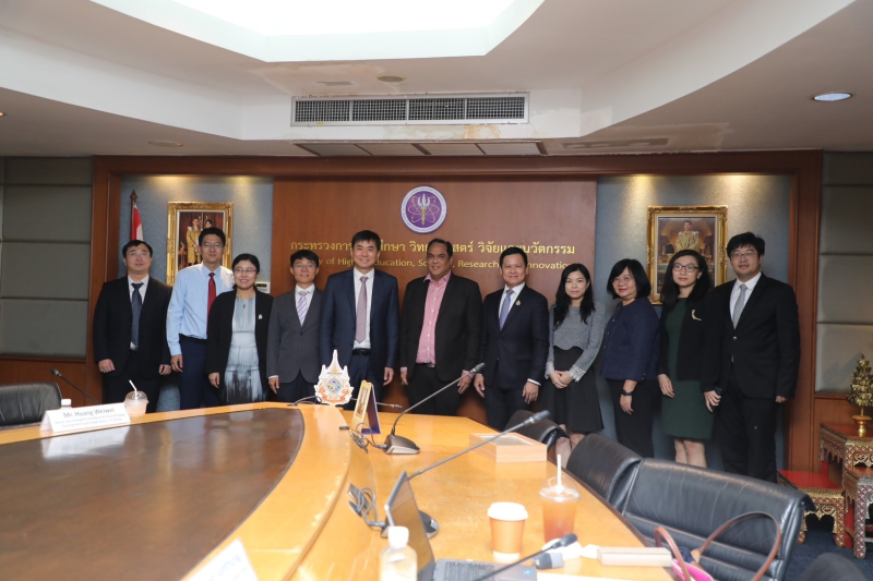 ดร. พันธุ์เพิ่มศักดิ์ กล่าวว่า น.ส.ศุภมาส อิศรภักดี รมว.อว. และกระทรวง อว. มีนโยบายที่มุ่งเน้นการพัฒนาทรัพยากรบุคคล การพัฒนาองค์ความรู้ และนวัตกรรมทางเทคโนโลยี โดยเฉพาะอย่างยิ่งในสาขาเทคโนโลยีขั้นสูง เช่น ยานยนต์ไฟฟ้า (EV) ปัญญาประดิษฐ์ (AI) เซมิคอนดักเตอร์ เทคโนโลยีอวกาศ วิทยาศาสตร์การแพทย์ และเทคโนโลยีเพื่อสิ่งแวดล้อม (Green Technology) รวมทั้งมุ่งมั่นที่จะส่งเสริมระบบนิเวศที่เอื้อให้สถาบันวิจัยและมหาวิทยาลัยต่างๆ สามารถบูรณาการความพยายามร่วมกัน เพื่อให้วิทยาศาสตร์และเทคโนโลยีเป็นแรงผลักดันการพัฒนาประเทศและเสริมสร้างขีดความสามารถในการแข่งขันของประเทศไทยในระดับโลก สำหรับความร่วมมือไทย-จีน ด้านการศึกษา วิทยาศาสตร์ และเทคโนโลยี กระทรวง อว. ได้รักษาความร่วมมืออย่างใกล้ชิดกับกระทรวงวิทยาศาสตร์และเทคโนโลยีของจีน สถาบันวิทยาศาสตร์จีน และกระทรวงศึกษาธิการของจีน ซึ่งการหารือความร่วมมือในครั้งนี้ถือเป็นก้าวสำคัญในการกระชับความร่วมมือด้านการอุดมศึกษาในโอกาสครบรอบ 50 ปีความสัมพันธ์ทางการทูตระหว่างไทยและจีน