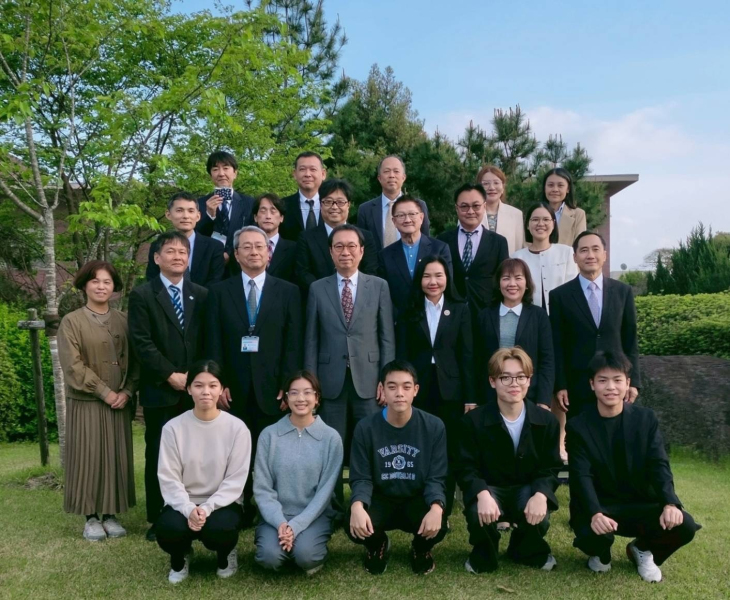 นางสาววราภรณ์ รุ่งตระการ รองปลัดกระทรวงการอุดมศึกษา วิทยาศาสตร์ วิจัยและนวัตกรรม (อว.) ในฐานะหัวหน้าคณะผู้แทนกระทรวง อว. พร้อมด้วย นางวัฒนาโสภี สุขสอาด ผู้อำนวยการโครงการสถาบันไทยโคเซ็น รักษาการในตำแหน่งที่ปรึกษาด้านยุทธศาสตร์และแผนการอุดมศึกษา วิทยาศาสตร์ วิจัยและนวัตกรรม และกรรมการผู้ทรงคุณวุฒิฯ โครงการสถาบันไทยโคเซ็น ได้ร่วมหารือกับ Prof .Dr. TAKAMATSU Hiroshi อธิการบดีสถาบันเทคโนโลยี Kumamoto KOSEN และได้พบปะพูดคุยกับนักเรียนทุนรัฐบาลไทย ณ Kumamoto KOSEN ประเทศญี่ปุ่น ในช่วงบ่ายของวันที่ 17 เมษายน 2568 เพื่อแลกเปลี่ยนข้อมูลด้านการออกแบบหลักสูตรร่วมกับภาคอุตสาหกรรมด้านเซมิคอนดักเตอร์และสร้างความร่วมมือในการจัดทำหลักสูตรเซมิคอนดักเตอร์ให้กับสถาบันไทยโคเซ็น
