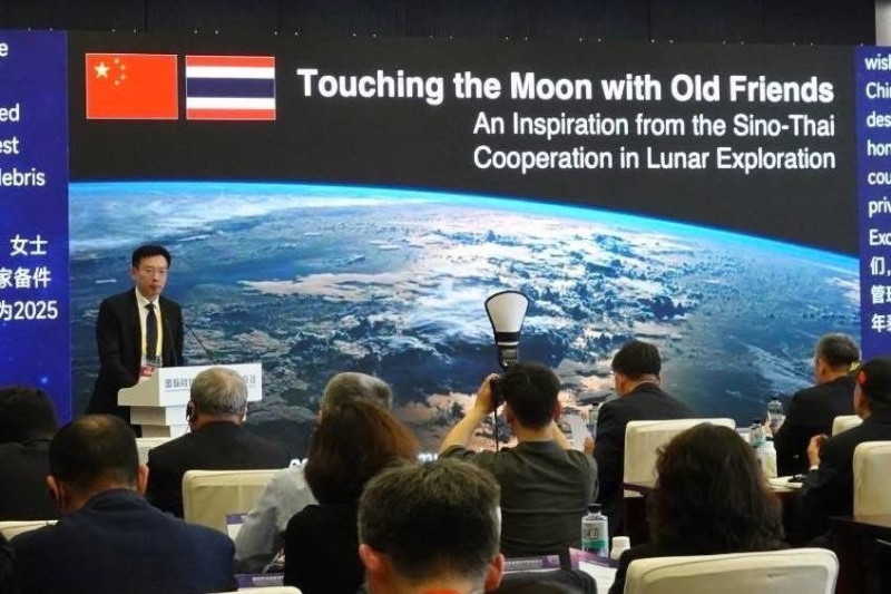 จีนประกาศให้ไทยเป็น 1 ใน 10 ประเทศนำอุปกรณ์วิจัยวิทยาศาสตร์ของไทยร่วมภารกิจฉางเอ๋อ-8 เตรียมส่งขึ้นสู่อวกาศสำรวจพื้นผิวดวงจันทร์ในปี 2029 นี้ ด้าน “ศุภชัย” ปลัด อว. นำทัพ NARIT-GISTDA โชว์ศักยภาพเทคโนโลยีอวกาศไทยในงานวันอวกาศแห่งชาติจีน 2025 ที่เซี่ยงไฮ้