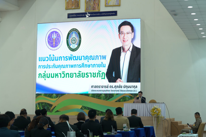 เมื่อวันที่ 13 พฤษภาคม ศ.ดร.ศุภชัย ปทุมนากุล ปลัดกระทรวงการอุดมศึกษา วิทยาศาสตร์ วิจัยและนวัตกรรม (อว.) เข้าร่วมการประชุมเรื่อง “เกณฑ์ประกันคุณภาพของมหาวิทยาลัยราชภัฏ 38 แห่งตามมาตรฐาน 2567” ซึ่งมีวัตถุประสงค์เพื่อจัดทำเกณฑ์การประเมินคุณภาพการศึกษาของมหาวิทยาลัยราชภัฏให้เป็นไปตามมาตรฐานที่สากลยอมรับ พร้อมบรรยายในหัวข้อ “แนวโน้มการพัฒนาคุณภาพการประกันคุณภาพการศึกษาภายในกลุ่มมหาวิทยาลัยราชภัฏ” โดยมีพลเอก ดาวพงษ์ รัตนสุวรรณ องคมนตรี ประธานที่ปรึกษากิตติมศักดิ์ที่ประชุมอธิการบดีมหาวิทยาลัยราชภัฏ (ทปอ.มรภ.) ให้เกียรติเข้าร่วม และ รศ.มาลิณี จุโฑปะมา ประธานทปอ.มรภ. รศ.ดร.วิทยา เมฆขำ คณะอนุกรรมการด้านการประกันและยกระดับคุณภาพอุดมศึกษา อว. และประธานหน่วยบริหารจัดการ กำกับ ติดตาม และประเมินผลการจัดการศึกษาที่แตกต่างจากมาตรฐานการอุดมศึกษา (Sand box) อว. อธิการบดี รองอธิการบดี และเจ้าหน้าที่ ร่วมรับฟัง ณ พิพิธภัณฑ์เกษตรเฉลิมพระเกียรติพระบาทสมเด็จพระเจ้าอยู่หัว คลองหลวง จังหวัดปทุมธานี