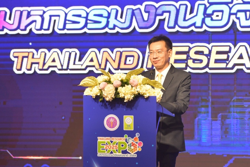 เมื่อวันที่ 16 มิ.ย. ศ.ดร.ศุภชัย ปทุมนากุล ปลัดกระทรวงการอุดมศึกษา วิทยาศาสตร์ วิจัยและนวัตกรรม (อว.) ได้รับมอบหมายจาก น.ส.ศุภมาส อิศรภักดี รัฐมนตรีว่าการกระทรวง อว. ให้เป็นประธานเปิดงาน Welcome Reception Expo : Thailand Research Expo 2025 ในมหกรรมงานวิจัยแห่งชาติ 2568 (Thailand Research Expo 2025) โดยมี ดร.วิภารัตน์ ดีอ่อง ผู้อํานวยการสํานักงานการวิจัยแห่งชาติ (วช.) กล่าวต้อนรับ และมีคณะผู้บริหาร หน่วยงานเครือข่ายงานวิจัย และบุคลากร เข้าร่วม ณ ห้อง World Ballroom ชั้น 23 โรงแรมเซนทาราแกรนด์และบางกอกคอนเวนชันเซ็ตเตอร์ เซ็นทรัลเวิลด์ กทม.