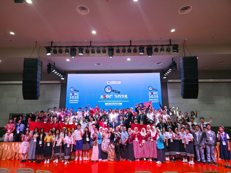เมื่อวันที่ 18 ก.ค. ดร.พันธุ์เพิ่มศักดิ์ อารุณี ผู้ช่วยปลัดกระทรวงการอุดมศึกษา วิทยาศาสตร์ วิจัยและนวัตกรรม (อว.) เป็นประธานในพิธีปิดการประกวดโครงงานวิทยาศาสตร์เยาวชนกลุ่มประเทศอาเซียน ครั้งที่ 11 (The 11th ASEAN Student Science Project Competition (ASPC 2025) โดยมี รศ.ดร.ธณัฏฐ์คุณ มงคลอัศวรัตน์ นายกสมาคมวิทยาศาสตร์แห่งประเทศไทยในพระบรมราชูปถัมภ์ ดร.ชนินทร วรรณวิจิตร รองผู้อำนวยการองค์การพิพิธภัณฑ์วิทยาศาสตร์แห่งชาติ (อพวช.) คณะกรรมการจัดงาน ASPC คณะผู้บริหาร อพวช. คณาจารย์ รวมทั้งนักเรียนที่ได้รับรางวัลการประกวดฯ เข้าร่วม ณ ห้องแสงเดือนแสงเทียน พิพิธภัณฑ์พระรามเก้า องค์การพิพิธภัณฑ์วิทยาศาสตร์แห่งชาติ (อพวช.)