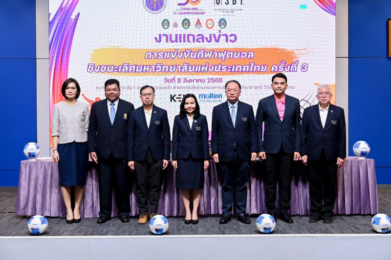 เมื่อวันที่ 8 สิงหาคม 2568 นางสาววราภรณ์ รุ่งตระการ รองปลัดกระทรวงการอุดมศึกษา วิทยาศาสตร์ วิจัยและนวัตกรรม (อว.) ได้รับมอบหมายจาก ศ.ดร.ศุภชัย ปทุมนากุล ปลัดกระทรวง อว. เป็นประธานการแถลงข่าวและจับสลากการแข่งขันฟุตบอลชิงชนะเลิศมหาวิทยาลัยแห่งประเทศไทย ครั้งที่ 3 (3rd Football Thailand University Championship) รอบชิงชนะเลิศ ระดับประเทศ ชิงถ้วยรางวัลรัฐมนตรี อว. พร้อมทุนการศึกษา รวมกว่า 1,000,000 บาท โดยมี รศ.บัญชา ชลาภิรมย์ ที่ปรึกษาคณะกรรมการจัดการแข่งขันฟุตบอลชิงชนะเลิศฯ ครั้งที่ 3 รศ.ภาสกร นันทพานิช รองประธานกรรมการจัดการฟุตบอลชิงชนะเลิศฯ ครั้งที่ 3 รศ.ชูสิทธิ์ ประดับเพ็ชร์ ประธานกรรมการบริหารกีฬามหาวิทยาลัยแห่งประเทศไทย นายมนตรี เครือวัลย์ รองประธานกรรมการจัดการฟุตบอลชิงชนะเลิศฯ ครั้งที่ 3 และนายไวกูณฐ์ ครองยุทธ รองอธิการบดีมหาวิทยาลัยราชภัฎอุบลราชธานี เข้าร่วม ณ ห้องแถลงข่าว สำนักงานปลัดกระทรวง อว. (ถนนโยธี)