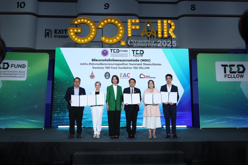 เมื่อวันที่ 14 สิงหาคม ศ.ดร.ศุภชัย ปทุมนากุล ปลัดกระทรวงการอุดมศึกษา วิทยาศาสตร์ วิจัยและนวัตกรรม (อว.) และประธานกรรมการบริหารกองทุนพัฒนาผู้ประกอบการเทคโนโลยีและนวัตกรรม (TED Fund) เป็นประธานในพิธีมอบรางวัล TED Fellow Awards 2025 ให้กับหน่วยงานที่มีผลการดำเนินงานยอดเยี่ยมในแต่ละภูมิภาค พร้อมเป็นประธานพิธีลงนามบันทึกข้อตกลงความร่วมมือ (MOU) ระหว่างสำนักงานปลัดกระทรวง อว. โดย TED Fund นำโดย ดร.วันนี นนท์ศิริ ผู้ตรวจราชการกระทรวง อว. กับ 4 เครือข่ายพันธมิตรของ TED Fund และการลงนาม MOU กับธนาคารยูโอบี จำกัด (มหาชน) และบริษัท กรุงศรี ฟินโนเวต จำกัด โดยมี นางสาวไปยดา หาญชัยสุขสกุล ผู้จัดการกองทุน TED Fund สื่อมวลชน และผู้สนใจเข้าร่วมงานอย่างคึกคัก ภายในงาน อว. แฟร์ 2025 ณ ศูนย์การประชุมแห่งชาติสิริกิติ์