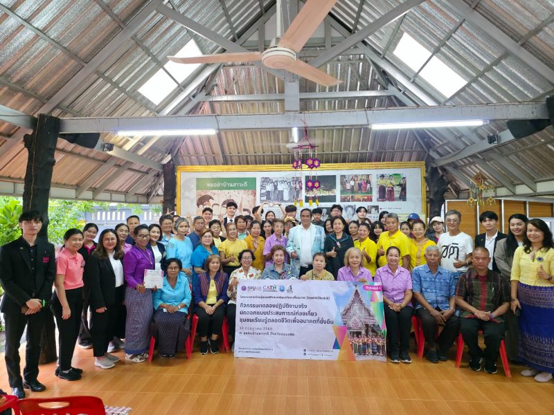 เมื่อวันที่ 30 สิงหาคม 2568 ดร.พันธุ์เพิ่มศักดิ์ อารุณี ผู้ช่วยปลัดกระทรวงการอุดมศึกษา วิทยาศาสตร์ วิจัยและนวัตกรรม (อว.) เข้าร่วมติดตามโครงการ “การพัฒนาทักษะนักออกแบบประสบการณ์ท่องเที่ยวชุมชนเรียนรู้ตลอดชีวิต” พร้อมมอบประกาศนียบัตรแก่ผู้สำเร็จการอบรม โดยมี ดร.นภาพร อาร์มสตรอง ผู้ทรงคุณวุฒิ สำนักงานปลัดกระทรวง อว. นางสาวนัดดา เจ๊ะยอเด ผู้อำนวยการกลุ่มขับเคลื่อนและพัฒนาการอุดมศึกษา วิทยาศาสตร์ วิจัยและนวัตกรรม 1 สำนักงานปลัดกระทรวง อว. นางสาววนิดา อ่อนละม้าย หัวหน้าวิทยาลัยการบิน มหาวิทยาลัยศรีปทุม ผู้แทนจากภาครัฐ เอกชน และภาคอุตสาหกรรมท่องเที่ยว เข้าร่วม ณ วัดไชยศรี ชุมชนสาวะถี จังหวัดขอนแก่น