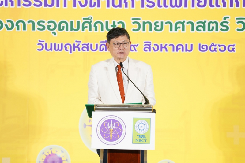 เมื่อวันที่ 19 สิงหาคม 2564 : ศ.(พิเศษ) ดร.เอนก เหล่าธรรมทัศน์ รัฐมนตรีว่าการกระทรวงการอุดมศึกษา วิทยาศาสตร์ วิจัย และนวัตกรรม (อว.) พร้อมด้วย ศ.ดร.นพ.สิริฤกษ์ ทรงศิวิไล ปลัด อว. ผศ.ดร.ดวงฤทธิ์ เบญจาธิกุล เลขานุการ รมว.อว. ดร.ดนุช ตันเทอดทิตย์ ผช.รมว.อว. ดร.วิภารัตน์ ดีอ่อง ผอ.สำนักงานการวิจัยแห่งชาติ และผศ.ดร.ณัฐพล ฤกษ์เกษมสันติ์ หัวหน้าโครงการวิจัยและนวัตกรรม ตรวจเยี่ยมพื้นที่ติดตั้งนวัตกรรมห้อง ICU ความดันลบเคลื่อนที่ โรงพยาบาลบุษราคัม พร้อมส่งมอบนวัตกรรมทางด้านการแพทย์แก่กระทรวงสาธารณสุข (สธ.) โดยมี นพ.ธงชัย กีรติหัตยากร รองปลัด สธ. พร้อมด้วย นพ.กิตติศักดิ์ อักษรวงศ์ ผู้ช่วยปลัด สธ. และ ผอ.โรงพยาบาลบุษราคัมให้การต้อนรับ