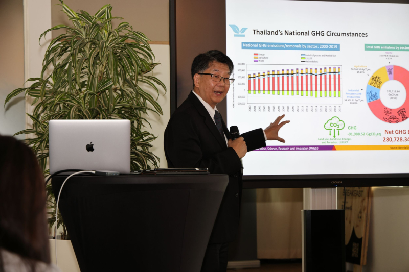 ในโอกาสนี้ รศ.ดร.พาสิทธิ์ หล่อธีรพงศ์ ได้บรรยายพิเศษในหัวข้อ "Thailand: Spearheading a Sustainable Path Towards South East Asia's Net Zero Transformation" โดยกล่าวถึงการให้ความสำคัญเป็นลำดับต้นของประเทศไทยในแก้ไขปัญหาการเปลี่ยนแปลงสภาพภูมิอากาศ ซึ่งเป็นไปตามประกาศเจตนารมณ์ของ พล.อ.ประยุทธ์ จันทร์โอชา นายกรัฐมนตรี ในที่ประชุมระดับผู้นำสมัชชาประเทศภาคีอนุสัญญาสหประชาชาติ ว่าด้วยการเปลี่ยนแปลงสภาพภูมิอากาศครั้งที่ 26 (COP26) ในการผลักดันประเทศไทยสู่ความเป็นกลางทางคาร์บอน ภายในปี 2050 และบรรลุเป้าหมายการปล่อยก๊าซเรือนกระจกสุทธิเป็นศูนย์ ภายในปี 2065 ซึ่งกระทรวง อว. มีบทบาทสำคัญในด้านการสนับสนุนด้านเทคโนโลยีและนวัตกรรม การแลกเปลี่ยนองค์ความรู้ และการพัฒนากลไกความร่วมมือ/เครือข่าย มุ่งเน้นการใช้ อววน. ในการสนับสนุนเป้าหมายความเป็นกลางทางคาร์บอนและการปล่อยก๊าซเรือนกระจกสุทธิเป็นศูนย์ผ่านกลไกต่างๆ