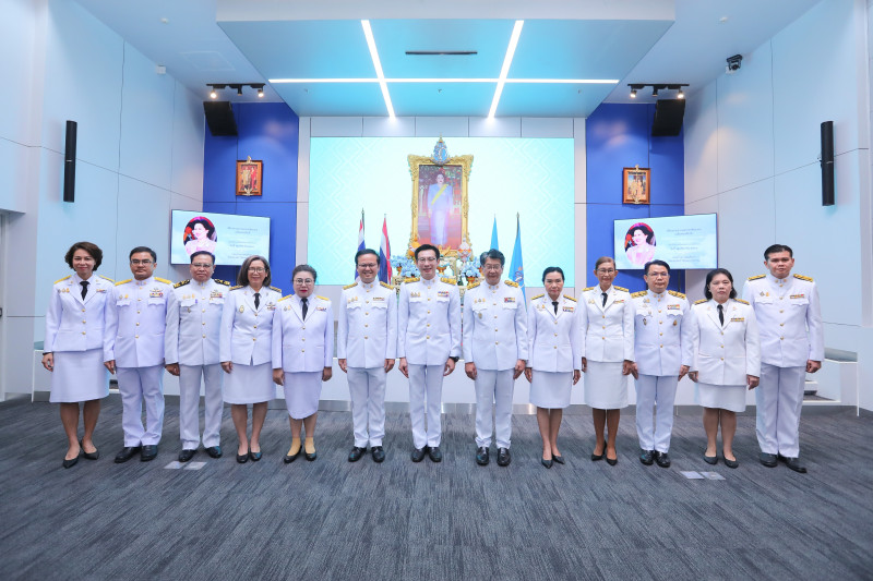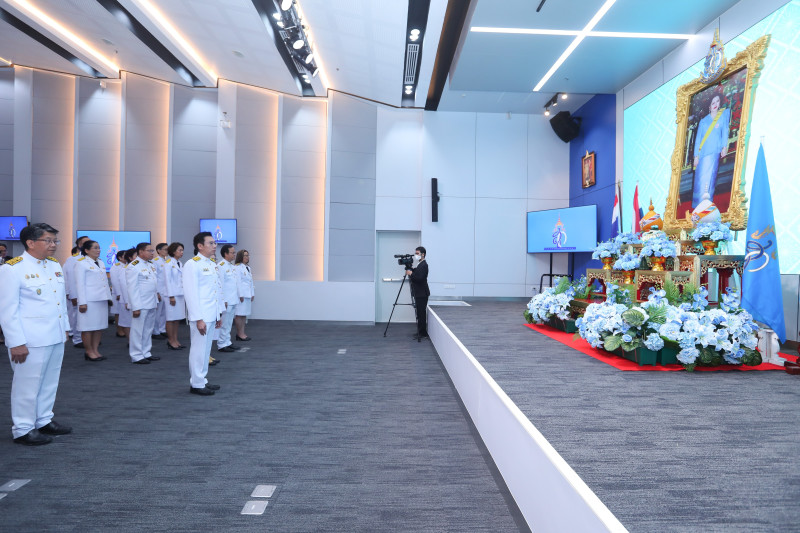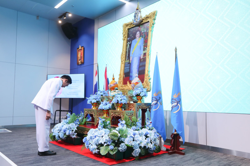 เมื่อวันที่ 11 ส.ค. 2566 เวลา 08.00 น. กระทรวงการอุดมศึกษา วิทยาศาสตร์ วิจัยและนวัตกรรม (อว.) จัดพิธีถวายพระพรชัยมงคล เฉลิมพระเกียรติสมเด็จพระนางเจ้าสิริกิติ์ พระบรมราชินีนาถ พระบรมราชชนนีพันปีหลวง เนื่องในโอกาสวันเฉลิมพระชนมพรรษา 12 สิงหาคม 2566 นำโดย ศ.ดร.ศุภชัย ปทุมนากุล รองปลัดกระทรวง อว., พร้อมด้วย รศ.ดร.พาสิทธิ์ หล่อธีรพงศ์ รองปลัดกระทรวง อว., นายวันนี นนท์ศิริ ผู้ช่วยปลัดกระทรวง อว.และผู้บริหาร หัวหน้าหน่วยงาน ข้าราชการ และเจ้าหน้าที่หน่วยงานในสังกัดกระทรวง อว. เข้าร่วมพิธี ณ ห้องแถลงข่าวชั้น 1 อาคารพระจอมเกล้า สำนักงานปลัดกระทรวง อว.