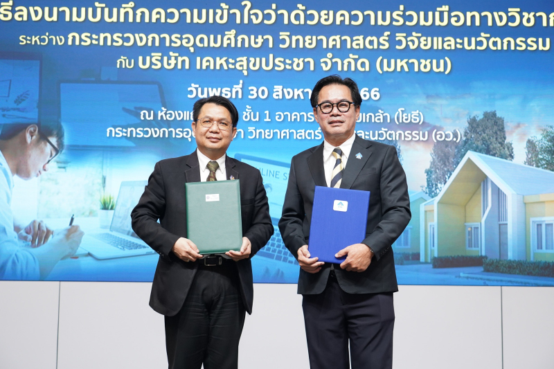 เมื่อวันที่ 30 ส.ค. นายวันนี นนท์ศิริ ผู้ช่วยปลัดกระทรวงการอุดมศึกษา วิทยาศาสตร์ วิจัยและนวัตกรรม (อว.) ร่วมลงนามบันทึกความเข้าใจว่าด้วยความร่วมมือทางวิชาการ กับ นายพิษณุพร อุทกภาชน์ ประธานเจ้าหน้าที่บริหาร บริษัท เคหะสุขประชา จำกัด (มหาชน) ผลักดันการเสริมสร้างองค์ความรู้ทักษะการประกอบอาชีพแก่ครัวเรือนเปราะบาง และทักษะการบริหารจัดการชีวิต ผ่านเครื่องมือบริการการศึกษาแบบเปิดที่มีการพัฒนาเนื้อหาหลักสูตรที่ส่งเสริมการประกอบอาชีพสุขประชา ยกระดับคุณภาพชีวิตภายใต้สิ่งแวดล้อมที่มีมาตรฐานอย่างต่อเนื่อง ณ ห้องแถลงข่าว ชั้น 1 อาคารพระจอมเกล้า กระทรวง อว.