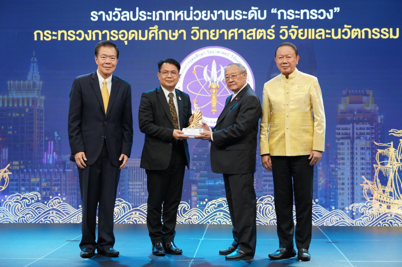 เมื่อวันที่ 13 ก.ย. นายวันนี นนท์ศิริ ผู้ช่วยปลัดกระทรวงการอุดมศึกษา วิทยาศาสตร์ วิจัยและนวัตกรรม (อว.) เป็นผู้แทนกระทรวง อว. รับรางวัลสุดยอดหน่วยงานภาครัฐด้านการอำนวยความสะดวกภาคธุรกิจ รางวัล “สำเภา นาวาทอง” ประจำปี 2566 จากหอการค้าไทยและสภาหอการค้าแห่งประเทศไทย โดยได้รับเกียรติจาก ดร.สุเมธ ตันติเวชกุล กรรมการและเลขาธิการ มูลนิธิชัยพัฒนา เป็นประธานมอบรางวัล ณ หอประชุม อาคาร 23 ชั้น 7 มหาวิทยาลัยหอการค้าไทย