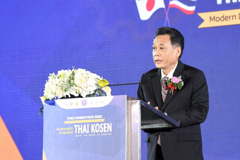 “สถาบัน Thai KOSEN นับได้ว่าเป็นตัวอย่างของการออกแบบการจัดการศึกษาในรูปแบบ Work-integrated learning ที่ให้นักศึกษาได้รับความรู้ทางทฤษฎีในระดับมหาวิทยาลัยเปรียบได้กับการใช้สติปัญญาควบคู่กับการเรียนรู้ การทำงาน มีกระบวนการคิดการแก้ปัญหาที่เกิดขึ้นจริงของภาคอุตสาหกรรมซึ่งเปรียบได้กับการใช้ทักษะการปฎิบัติงานจริง นักศึกษา Thai KOSEN ได้รับการเรียนรู้จาก คณาจารย์ ผู้เชี่ยวชาญจากภาคอุตสาหกรรมของประเทศญี่ปุ่น และมีโอกาสไปแลกเปลี่ยนและฝึกงานกับภาคอุตสาหกรรมทั้งในประเทศไทยและญี่ปุ่นทำให้ได้พัฒนาทั้ง Soft skills และ Professional skills เพราะเป็นทรัพยากรสำคัญที่ช่วยสนับสนุนกำลังคนให้มีทักษะและสมรรถนะตามความต้องการของอุตสาหกรรมในประเทศไทยเพื่อรองรับการลงทุนจากต่างประเทศได้ อย่างมีประสิทธิภาพสูงสุด” นายเพิ่มสุข กล่าว