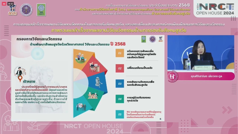เปิดบ้านวันที่สี่ NRCT Open House 2024 วช. ชี้แจงกรอบการวิจัยและนวัตกรรม ปีงบประมาณ 2568 ด้านการรองรับสังคมสูงวัย