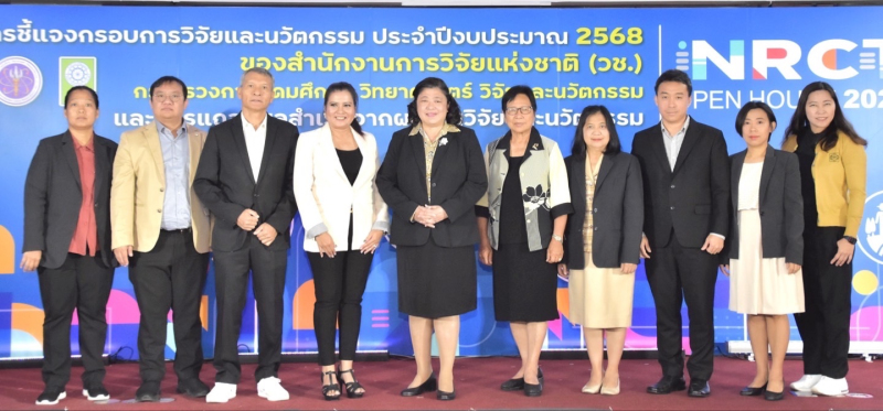 วันที่ 6 มิถุนายน 2567 สำนักงานการวิจัยแห่งชาติ (วช.) กระทรวงการอุดมศึกษา วิทยาศาสตร์ วิจัยและนวัตกรรม จัดการประชุมชี้แจงกรอบการวิจัยและนวัตกรรม ประจำปีงบประมาณ 2568 และแถลงผลสำเร็จจากการวิจัยและนวัตกรรม NRCT Open House 2024 โดยมี ดร.วิภารัตน์ ดีอ่อง ผู้อำนวยการสำนักงานการวิจัยแห่งชาติ เป็นประธานเปิดการประชุมฯ เพื่อประชาสัมพันธ์เกี่ยวกับการรับข้อเสนอการวิจัยและนวัตกรรม และกรอบการวิจัยและนวัตกรรมที่ วช. ให้การสนับสนุนทุนการวิจัยและนวัตกรรม ประจำปีงบประมาณ 2568