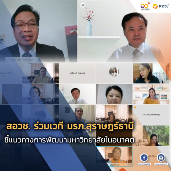 (7 มิถุนายน 2564) ดร.กิติพงค์ พร้อมวงค์ ผู้อำนวยการสำนักงานสภานโยบายการอุดมศึกษา วิทยาศาสตร์ วิจัยและนวัตกรรมแห่งชาติ (สอวช.) ได้รับเชิญบรรยายหัวข้อ “นโยบาย อววน. สู่การพัฒนามหาวิทยาลัยในอนาคต” ภายใต้โครงการอาหารสมองออนไลน์ เพื่อทบทวนยุทธศาสตร์ ของมหาวิทยาลัยราชภัฏสุราษฎร์ธานี โดยมีผู้สนใจเข้าร่วมรับฟังการบรรยายผ่านระบบออนไลน์กว่า 330 คน