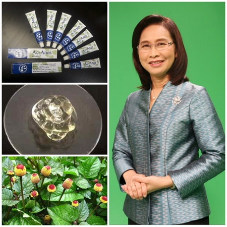 “..ในการทดสอบประสิทธิภาพการออกฤทธิ์ของผลิตภัณฑ์เจลชาเฉพาะที่จากสารสกัดผักคราดหัวแหวน ได้ร่วมวิจัยกับศูนย์เชี่ยวชาญนวัตกรรมวัสดุ วว. พบว่า ภายหลังการทาในบริเวณที่จะรักษา เมื่อใช้ร่วมกับเครื่องนวดอัลทราโซนิกส์ เจลจะออกฤทธิ์ประมาณ 30 นาที หากไม่ได้ใช้กับเครื่องนวดฯ เจลจะออกฤทธิ์ในเวลาประมาณ 1 ชั่วโมง ซึ่งเท่ากับระยะเวลาที่ใช้ยาทาภายนอกเพื่อให้เกิดอาการชาก่อนการทำหัตถการเล็กๆ ตามที่โรงพยาบาลหรือคลินิกทั่วไปใช้ มีความปลอดภัยและมีประสิทธิภาพการรักษาในระดับที่มีนัยสำคัญ ทั้งนี้ วว. ได้ยื่นจดสิทธิบัตรผลงานวิจัยนี้เรียบร้อยแล้ว...” นักวิจัยอาวุโส วว. กล่าว