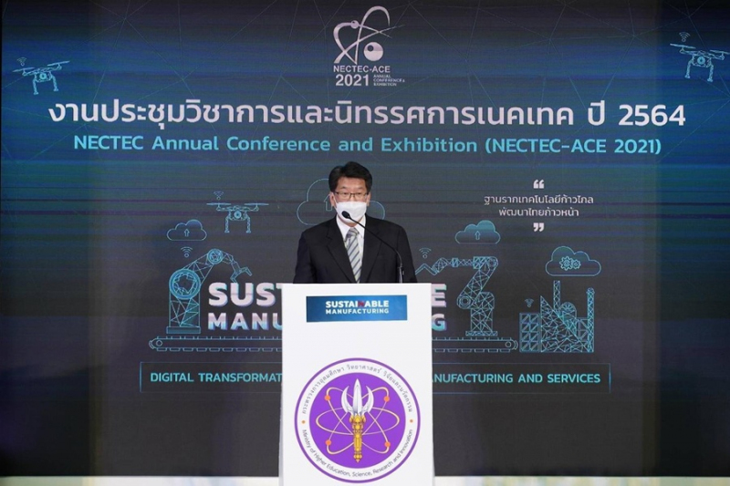 13 ธันวาคม 2564 : รองศาสตราจารย์ ดร.พาสิทธิ์ หล่อธีรพงศ์ รองปลัดกระทรวงการอุดศึกษา วิทยาศาสตร์ วิจัยและนวัตกรรม เป็นประธานเปิดงานประชุมวิชาการและนิทรรศการเนคเทคประจำปี 2564 หรือ NECTEC Annual Conference and Exhibitions 2021 (NECTEC–ACE 2021) ภายใต้แนวคิด “ฐานรากเทคโนโลยีก้าวไกล พัฒนาไทยก้าวหน้า” มุ่งเน้นด้าน “Digital Transformation for Sustainable Manufacturing and Services” จัดโดย ศูนย์เทคโนโลยีอิเล็กทรอนิกส์และคอมพิวเตอร์แห่งชาติ ร่วมกับ สภาอุตสาหกรรมแห่งประเทศไทย มหาวิทยาลัยเทคโนโลยีราชมงคลกรุงเทพ และหน่วยงานพันธมิตรเอกชน เพื่อยกระดับและเพิ่มขีดความสามารถภาคอุตสาหกรรมไทยด้วยเทคโนโลยีดิจิทัล เป้าหมายเพื่อแสดงผลงานทางด้านนวัตกรรมการผลิตและบริการที่ยั่งยืน ซึ่งสามารถนำไปใช้แก้ไขปัญหาและประยุกต์ใช้งานได้จริงในสายการผลิต พร้อมเปิดตัวศูนย์นวัตกรรมการผลิตยั่งยืน (Sustainable Manufacturing Center: SMC) ตอบโจทย์การผลิตยุคใหม่ พัฒนาไทยสู่ Industry 4.0 ณ สภาอุตสาหกรรมแห่งประเทศไทย