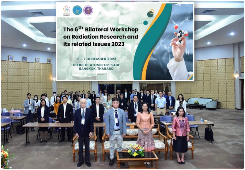 สำนักงานปรมาณูเพื่อสันติ (ปส.) กระทรวงการอุดมศึกษา วิทยาศาสตร์ วิจัยและนวัตกรรม (อว.) ร่วมกับมหาวิทยาลัยฮิโรซากิ ประเทศญี่ปุ่น จัดการประชุม “The 6 Bilateral Workshop on Radiation Research and its relates issues 2023” ตั้งแต่วันที่ 6 - 7 ธันวาคม 2566 ณ ห้องประชุมใหญ่ ชั้น 2 อาคาร 1 ปส. ซึ่งการประชุมมีวัตถุประสงค์เพื่อสร้างความร่วมมือและแลกเปลี่ยนความรู้ ข้อมูลทางวิชาการและงานวิจัยของผู้เชี่ยวชาญ นักวิจัย และนักวิชาการจากหน่วยงานและมหาวิทยาลัยภายใต้กระทรวง อว. และมหาวิทยาลัยของประเทศญี่ปุ่น ในด้านการกำกับดูแลความปลอดภัยทางนิวเคลียร์และรังสี การประเมินปริมาณรังสี กัมมันตภาพรังสีในสิ่งแวดล้อม การเตรียมความพร้อมและการตอบสนองกรณีฉุกเฉินทางนิวเคลียร์และรังสี และเรื่องอื่น ๆ ที่เกี่ยวข้อง โดยมีผู้เชี่ยวชาญ นักวิจัย และนักศึกษา จาก ปส., สถาบันเทคโนโลยีนิวเคลียร์แห่งชาติ (องค์การมหาชน) (สทน.) และมหาวิทยาลัยจากประเทศไทย และประเทศญี่ปุ่น จำนวนทั้งสิ้น 9 แห่ง 60 คน ทั้งนี้การประชุมครั้งนี้ จะเป็นการสร้างความร่วมมือด้านวิชาการ และงานวิจัยด้านการกำกับดูแลความปลอดภัยทางนิวเคลียร์และรังสี และด้านอื่น ๆ ที่เกี่ยวข้อง ระหว่างหน่วยงานภายใต้กระทรวง อว. และมหาวิทยาลัยจากประเทศญี่ปุ่นอย่างเข้มแข็ง และยั่งยืนต่อไป