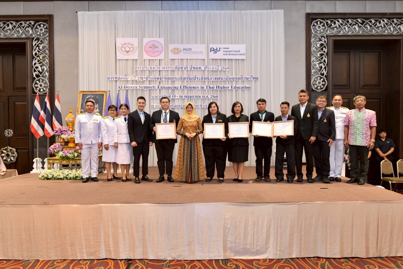 เมื่อวันที่ 15 พฤษภาคม แพทย์หญิงเพชรดาว โต๊ะมีนา ที่ปรึกษารัฐมนตรีว่าการกระทรวงการอุดมศึกษา วิทยาศาสตร์ วิจัยและนวัตกรรม (อว.) เป็นประธานเปิดโครงการประชุมวิชาการระดับชาติที่ประชุมสภาข้าราชการ พนักงาน และลูกจ้างมหาวิทยาลัยแห่งประเทศไทย ประจำปี พ.ศ. 2568 AI - Driven Support: Enhancing Efficiency in Thai Higher Education: การขับเคลื่อนปัญญาประดิษฐ์เพื่อยกระดับเพิ่มประสิทธิภาพสถาบันอุดมศึกษาไทย โดยมี ศาสตราจารย์ ดร.วิเลิศ ภูริวัชร ประธานที่ประชุมอธิการบดีแห่งประเทศไทย (ทปอ.) และอธิการบดีจุฬาลงกรณ์มหาวิทยาลัย คุณเฉลิมพล ปุณโณทก ประธานเจ้าหน้าที่บริหาร CT Asia, CT Asia Robotics คุณเรวัต รัตนกาญจน์ ประธานที่ประชุมสภาข้าราชการ พนักงานและลูกจ้างมหาวิทยาลัยแห่งประเทศไทย (ปขมท.) ผศ.ดร.เชิดชัย อุดมพันธ์ คณบดีคณะมนุษยศาสตร์และสังคมศาสตร์มหาวิทยาลัยสงขลานครินทร์ ผู้บริหารมหาวิทยาลัยและสถาบัน วิทยากรผู้ทรงคุณวุฒิ คณะกรรมการบริหาร ปขมท. คณะกรรมการจัดงานประชุมวิชาการ ผู้ได้รับคัดเลือกเป็นบุคลากรสายสนับสนุนผู้มีผลงานดีเด่นแห่งชาติ ปขมท. ประจำปี พ.ศ. 2567 เข้าร่วม ณ โรงแรมเซ็นจูรี่ พาร์ค เขตราชเทวี กรุงเทพฯ