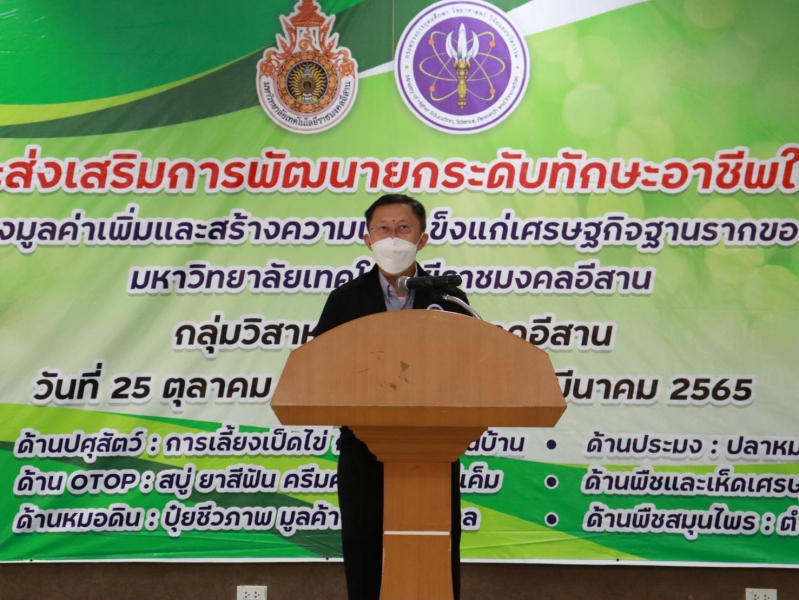 (9 ธันวาคม 2564) ณ ศูนย์พัฒนาคุณภาพชีวิตผู้สูงอายุและประชาชน ต.ไทยสามัคคี อ.วังน้ำเขียว จ.นครราชสีมา - ดร.ดนุช ตันเทอดทิตย์ ผู้ช่วยรัฐมนตรีประจำกระทรวงการอุดมศึกษา วิทยาศาสตร์ วิจัยและนวัตกรรม (อว.) ได้รับมอบหมายจาก ศ.(พิเศษ) ดร.เอนก เหล่าธรรมทัศน์ รัฐมนตรีว่าการกระทรวง อว. เป็นประธานในพิธีเปิดการอบรมเชิงปฏิบัติการ โครงการอบรมและส่งเสริมการพัฒนายกระดับทักษะอาชีพในภาคเกษตรกรรม ของเครือข่ายวิสาหกิจชุมชนภาคตะวันออกเฉียงเหนือ ซึ่งจัดโดยมหาวิทยาลัยเทคโนโลยีราชมงคลอีสาน เพื่อเป็นการประชาสัมพันธ์โครงการสำหรับกลุ่มเป้าหมายในภูมิภาคอื่น ๆ ของชุมชน โดยมี รศ.ดร.บัณฑิต กฤตาคม รองอธิการบดีฝ่ายวิจัย พัฒนานวัตกรรม และบริการวิชาการ มทร.อีสาน พร้อมด้วย ผศ.ดร.วิโรจน์ ลิ้มไขแสง อดีตอธิการบดี มทร. อีสาน ในฐานะที่ปรึกษาโครงการฯ ผศ.ดร.นิภาพร อามัสสา ประธานโครงการฯ พร้อมด้วยคณะทำงานโครงการฯ ประธานกลุ่มวิสาหกิจชุมชนภาคอีสาน และสมาชิกกลุ่มวิสาหกิจชุมชนภาคอีสาน ร่วมในพิธีเปิด
